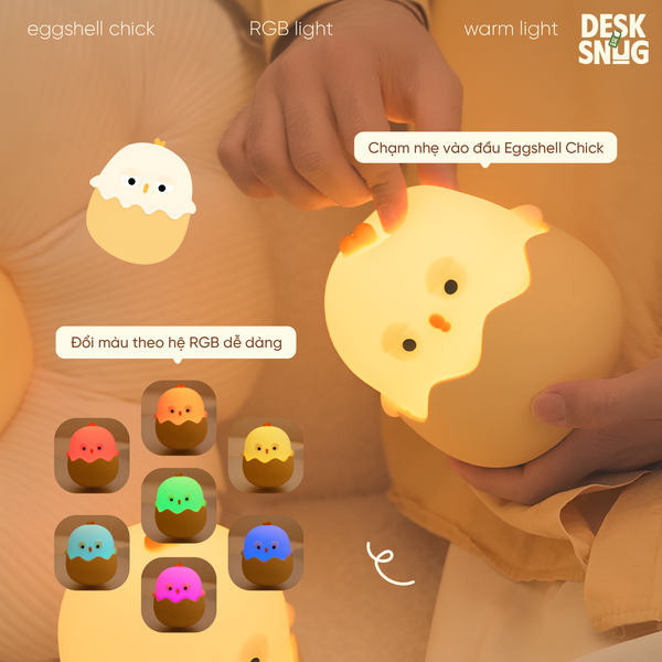 ,chú gà con Eggshell Chick giúp bạn tô màu mọi cảm xúc của bản thân theo cách đặc biệt nhất! Với Eggshell Chick, bạn sẽ hoàn toàn kiểm soát sắc màu của ánh sáng chỉ với một động tác chạm đơn giản.